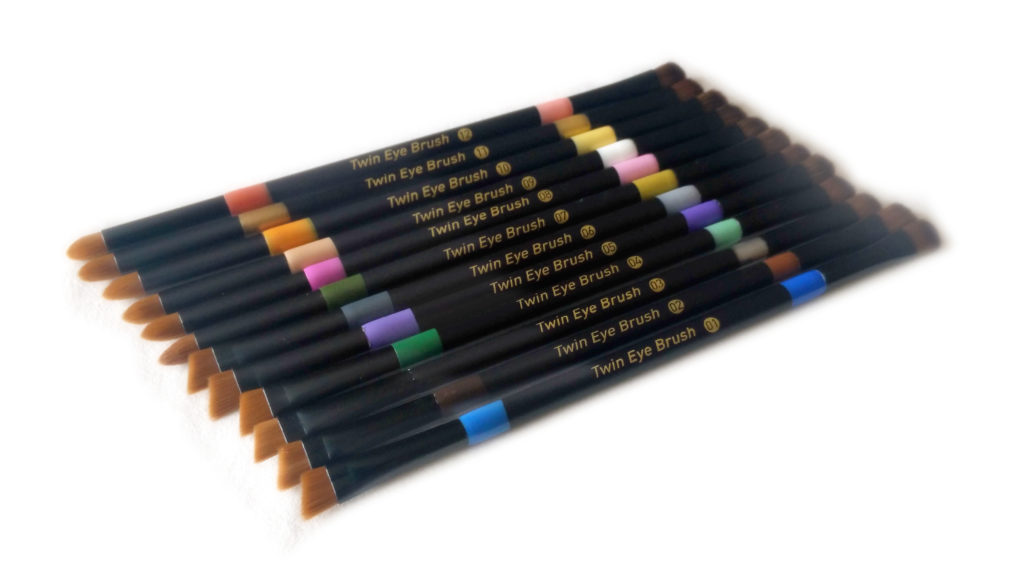 Pour l’instant la marque propose 2 modèles, déclinés en plusieurs couleurs : un pinceau estompeur langue d’un côté / eyeliner de l’autre, et un second pinceau avec un côté estompeur langue / précision de l’autre.