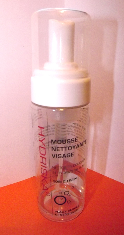 La Mousse nettoyante visage Hydriska (Laboratoire Actavis) est ce genre de grosse mousse blanche bien généreuse. La texture est transparente et liquide, quasi comme de l’eau mais elle se transforme en mousse blanche et fine à chaque pression. Il s’agit donc d’un gros flacon pompe de 150 ml, tout en transparence et en simplicité. Je ne peux pas vous parler de son efficacité démaquillante car je l’utilisais uniquement le matin. 3 pressions (j’aime bien en avoir plein la tronche ^^) et je me nettoie bien le visage avec la mousse, rinçage et hop, le tour est joué ! Bien-sûr et ce depuis longtemps, en sortant de la douche, la première chose que je fais c’est spray d’Eau thermale sur la tronche. L’eau d’ici est incroyablement calcaire et néfaste pour la peau.