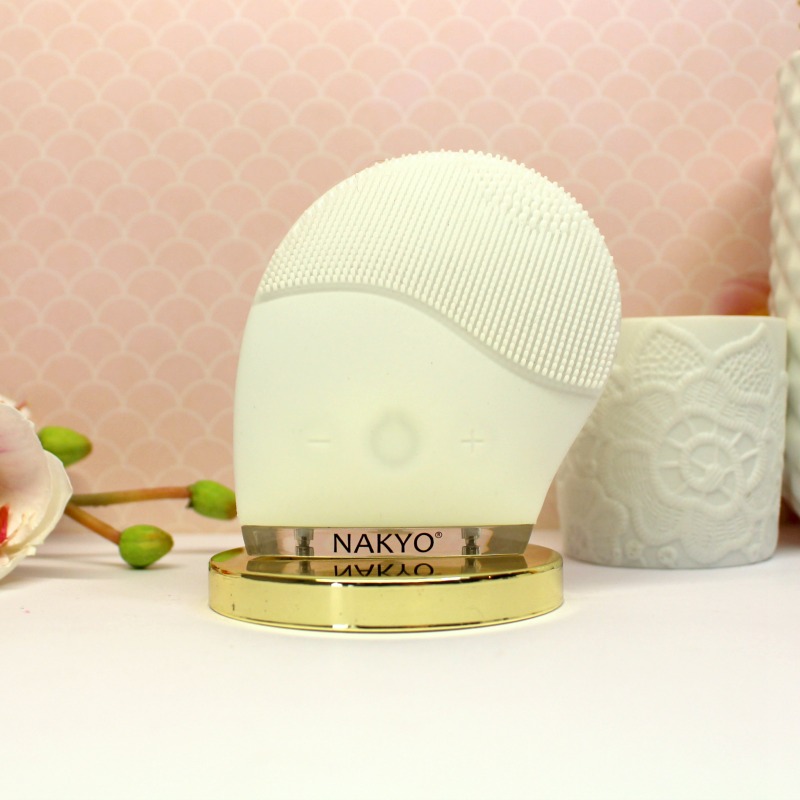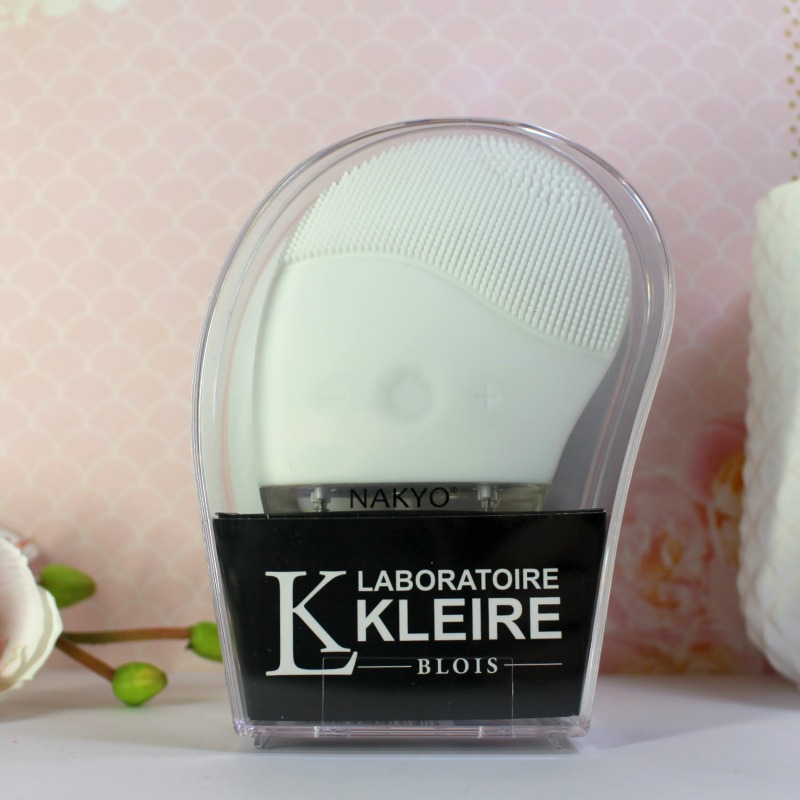 Cette brosse se nomme Nakyo du Laboratoire Kleire (basé à Blois) est une brosse électrique rechargeable sans fil dont le principe est de nettoyer la peau en profondeur grâce aux vibrations et à ses picots. Elle est en silicone blanc, a une forme légèrement incurvée qui la rend ergonomique et facile à prendre en main, elle n’est ni trop grosse, ni trop petite, légère et tient parfaitement debout.
